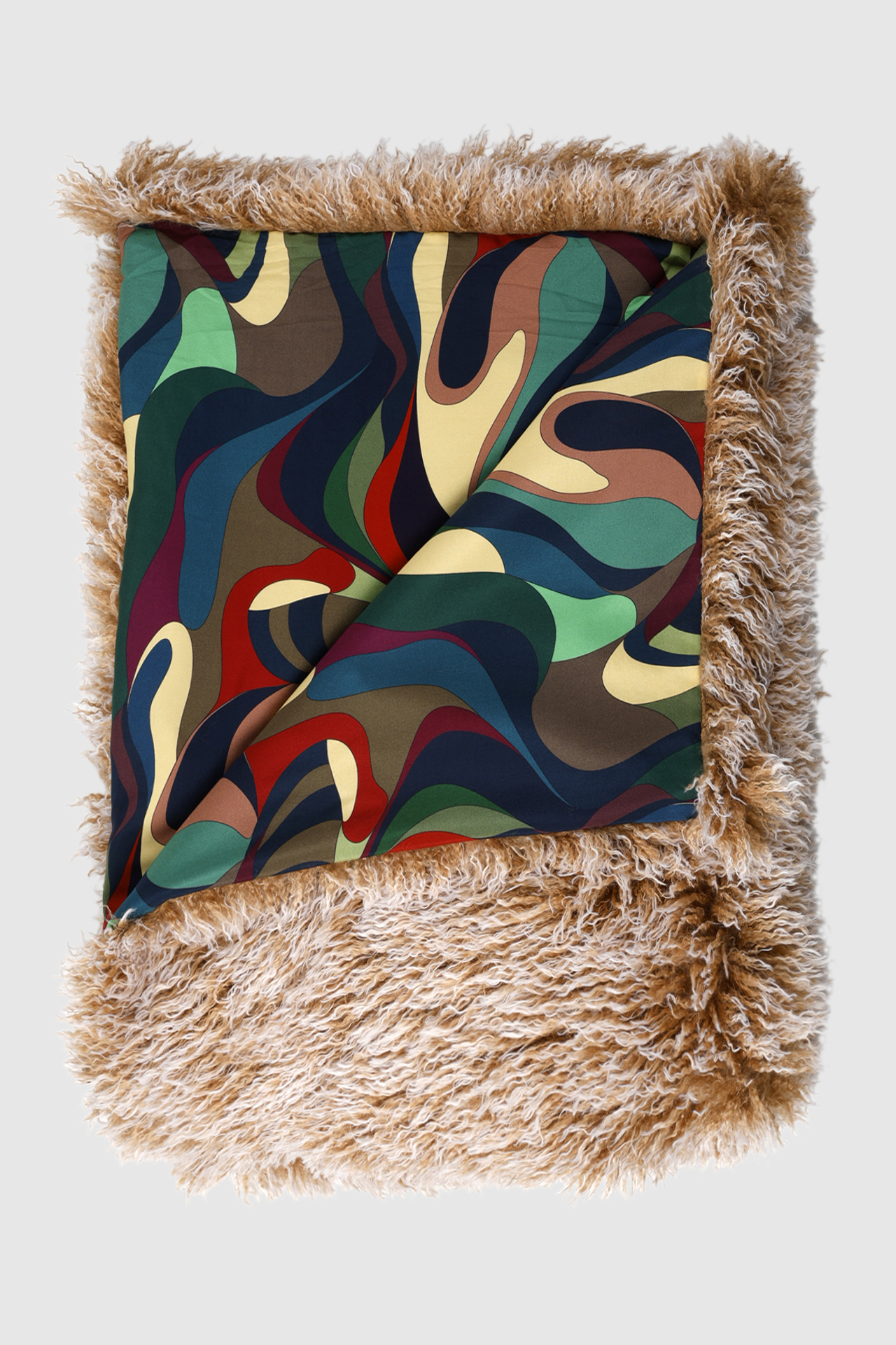 Diese exklusive Boscana Decke vereint feinsinnige Materialien mit zurückhaltender Eleganz. Die Vorderseite aus ultra-weichem Fake Fur in Braun melange Nuance schenkt ein besonders angenehmes Hautgefühl, während die Rückseite aus hochwertiger, bedruckter Seide dem Design eine edle Tiefe verleiht.