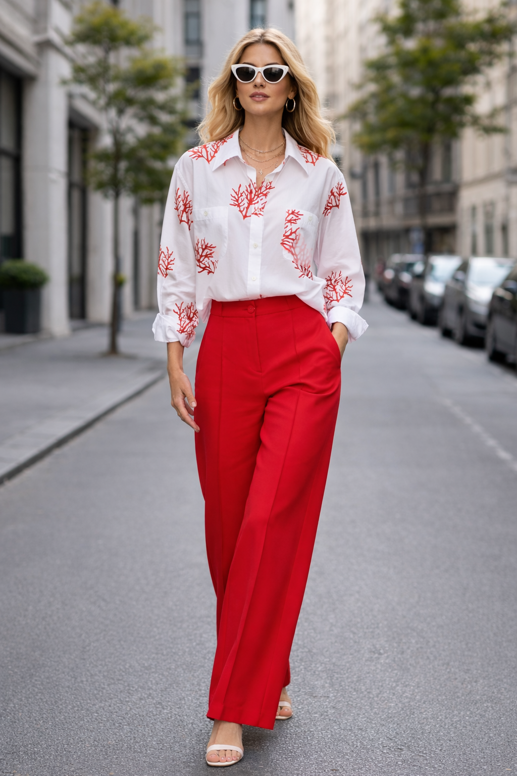 Diese moderne Oversized-Bluse vereint mühelos lässigen Chic mit eleganter Leichtigkeit.