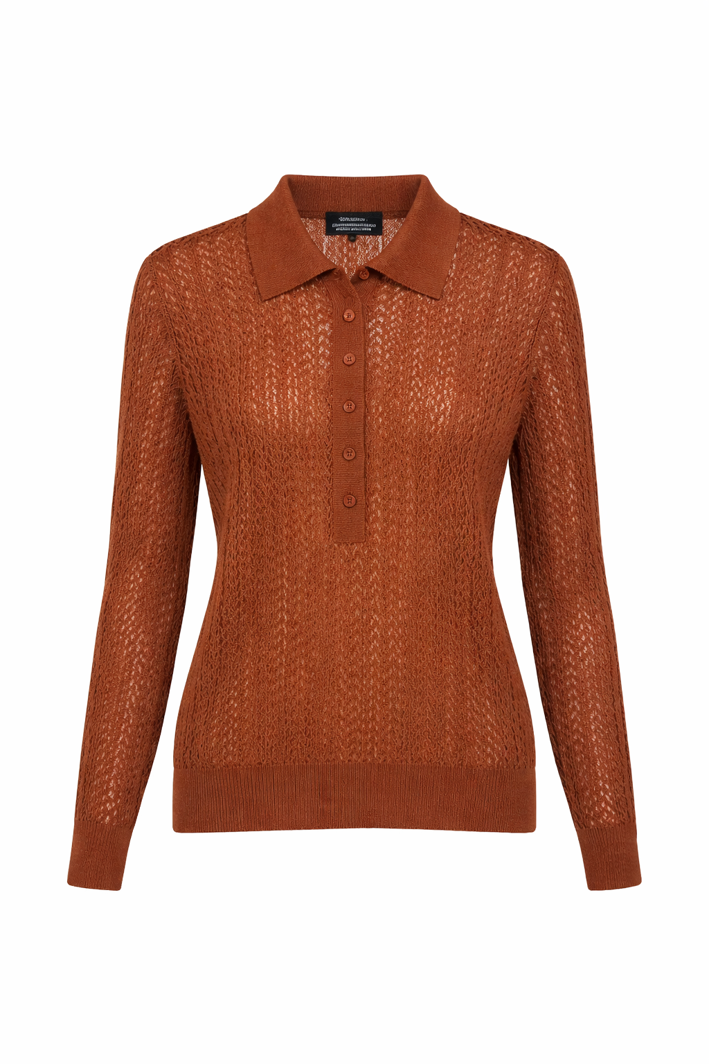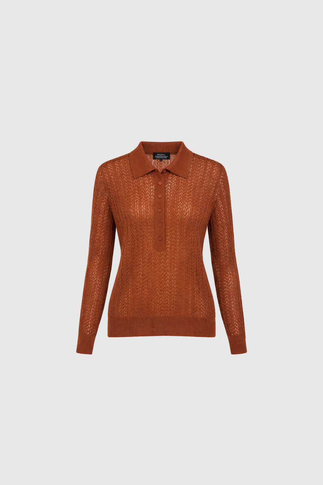 Dieser elegante Strick-Polopullover vereint zeitlose Raffinesse mit modernem Designer-Flair.