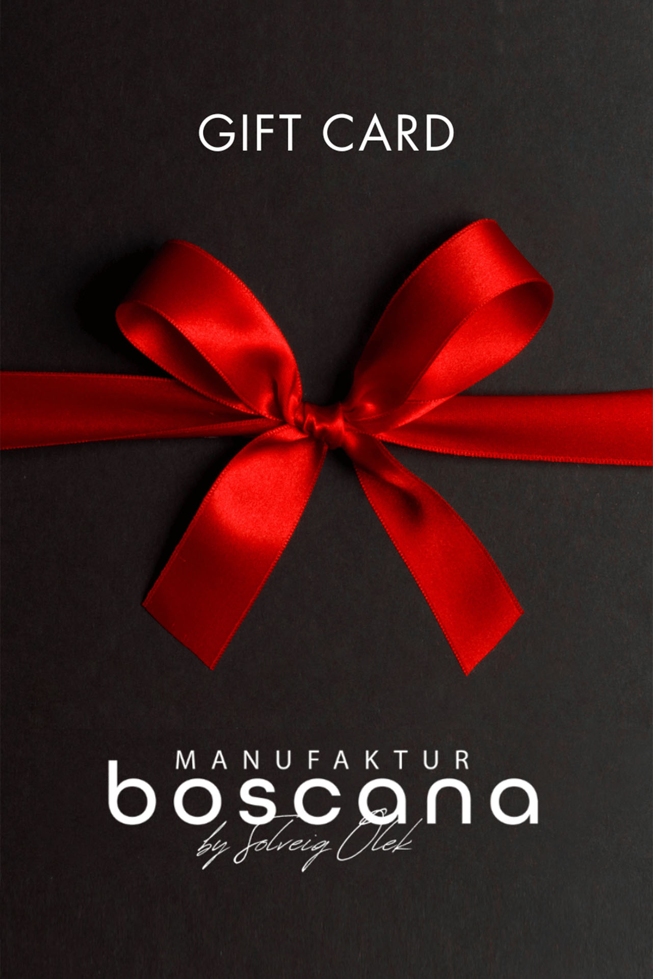 Wir senden Ihnen einen individuellen Boscana Geschenkgutschein per Post, den Sie dem Beschenkten übergeben können.