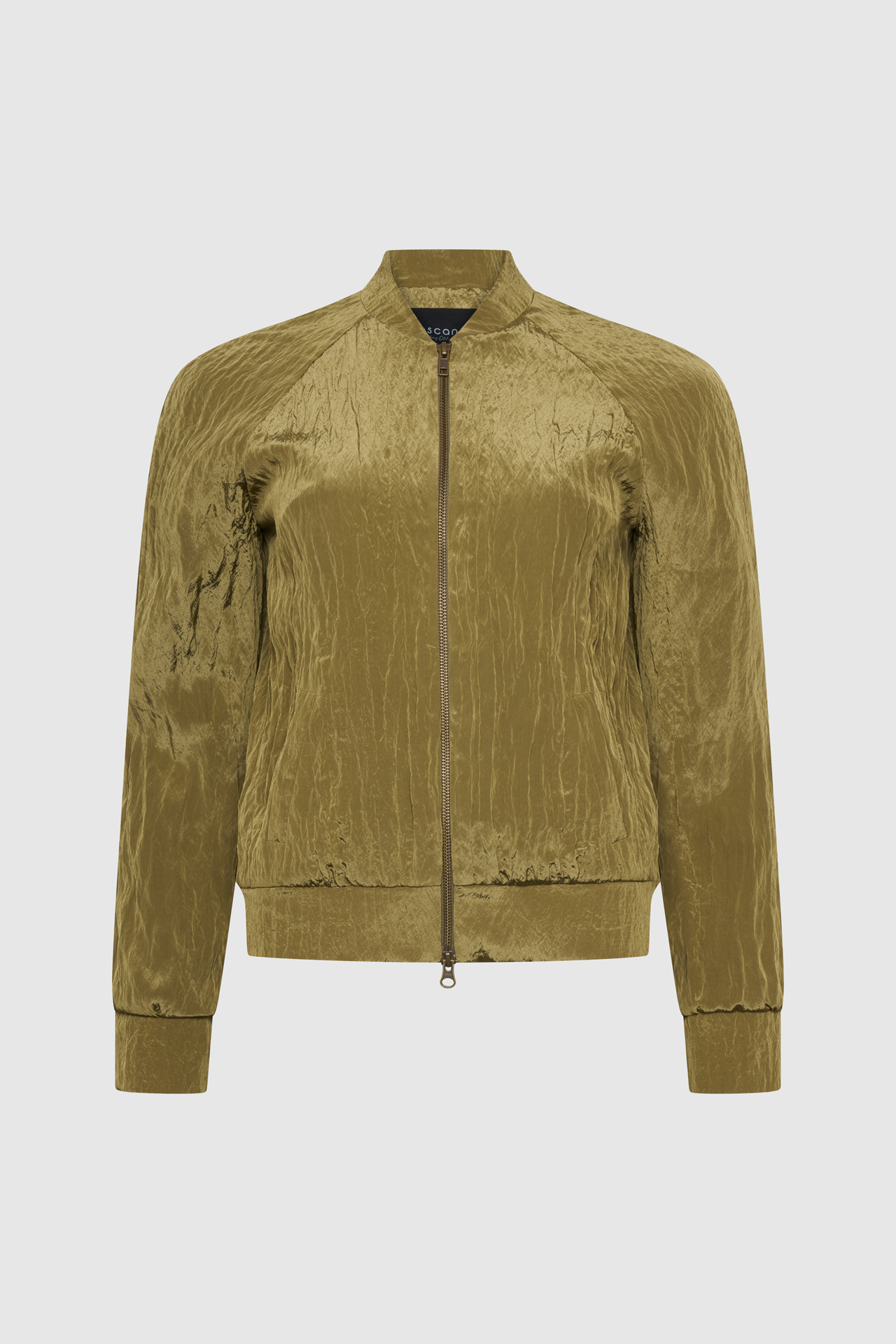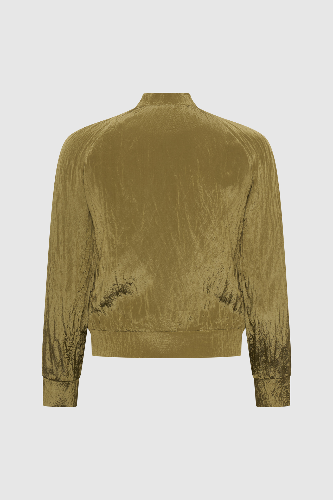 Bei der Jacke in einem warmen Oliv-/Khaki-Ton mit einer besonderen, leicht crinkleartigen Struktur.