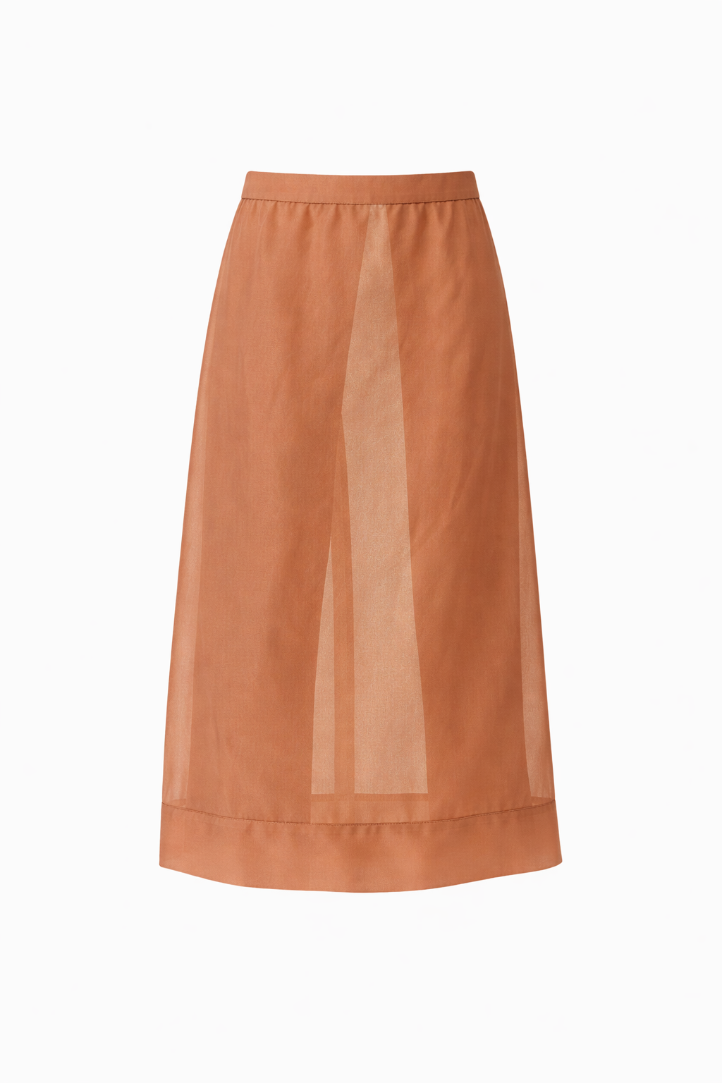 Dieser transparente Seidenrock in Rosé verkörpert pure Eleganz und moderne Weiblichkeit. Die edle, hauchzarte Seide verleiht dem Rock eine außergewöhnliche Leichtigkeit und sorgt für einen sanft fließenden Fall.