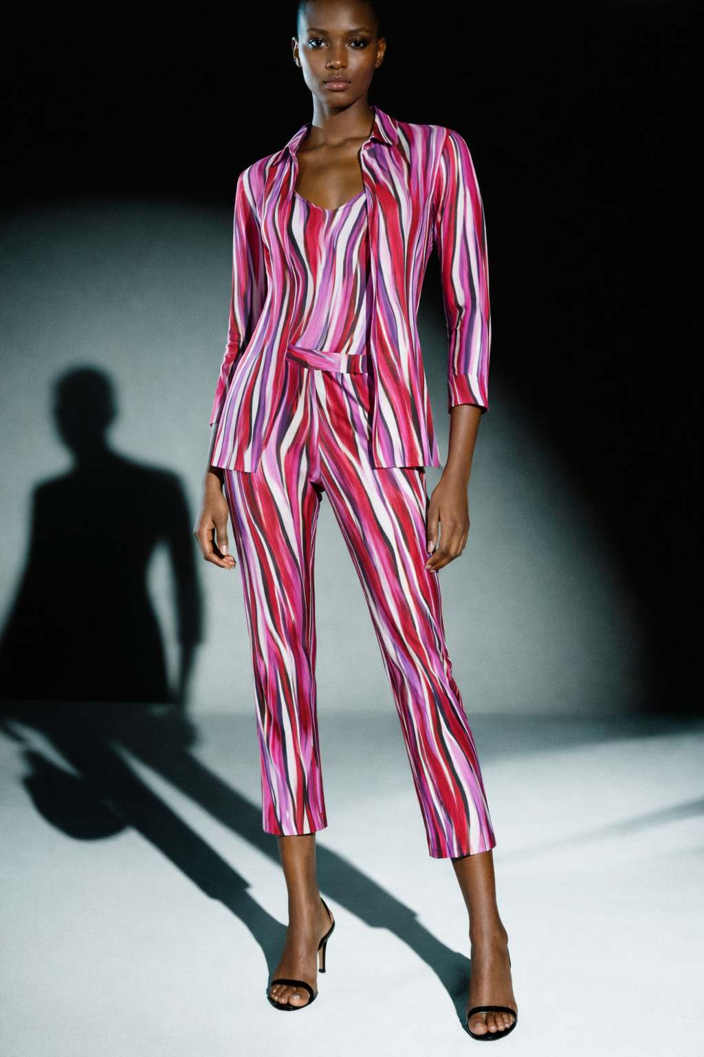 Statement 7/8 tel Hose im Rot-Lila Print aus Viskose-Stretch