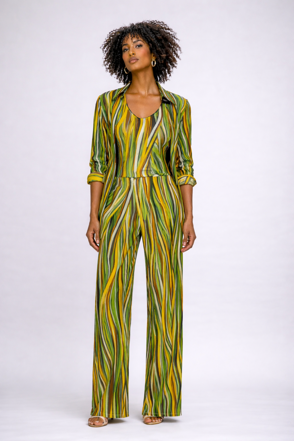 Eine ausdrucksstarke Statement-Hose mit modernem Gelb-Grün Print.